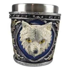 Com capacidade para 30ml, este copo apresenta a imagem emblemática do Lobo Branco em 3D, adicionando um toque de autenticidade à sua coleção de itens de Game of Thrones. Com 7cm de altura e 7cm de largura, é compacto o suficiente para caber facilmente na palma da sua mão.