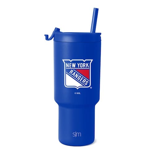 Simple Modern Copo oficialmente licenciado NHL New York Rangers 850 g com tampa flip e canudos | Copo de aço inoxidável com isolamento de hóquei | Presentes para homens e mulheres | Coleção Trek | New - Oficialmente licenciado: o presente perfeito do New York Rangers! - Compatível com porta-copos: A forma afunilada a torna o copo ideal - Leve-nos com você aonde quer que você vá - À prova de vazamento: oferece uma tampa flip de vedação firme. Vem com dois canudos - Isolamento de parede dupla: mantém as bebidas quentes ou frias por horas - Garantia vitalícia limitada e patente pendente
