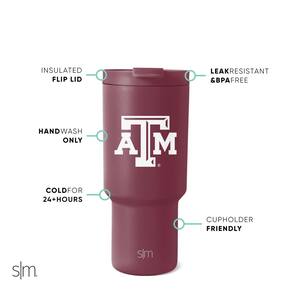Simple Modern Copo oficialmente licenciado Collegiate Texas A&M Aggies 850 g com tampa dobrável e canudos | Copo isolado de aço inoxidável | Presentes para homens e mulheres | Coleção Trek | Texas A&M - Oficialmente licenciado: o presente perfeito Texas A&M Aggies! - Compatível com porta-copos – O formato afunilado torna o copo ideal – leve-nos com você aonde quer que você vá - À prova de vazamento: oferece uma tampa flip de vedação apertada. Vem com dois canudos - Isolamento de parede dupla: mantém as bebidas quentes ou frias por horas - Garantia vitalícia limitada e patente pendente