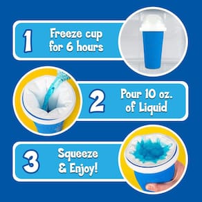 FÁCIL COMO 1-2-3: Fazer uma bebida gelada refrescante nunca foi tão fácil com esta xícara de congelamento rápido. Basta congelar a bolsa de gelo, adicionar a bebida de sua escolha e espremer até que a bebida congelada esteja pronta.