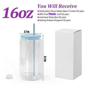 - ?Você receberá?: O conjunto inclui 25 pacotes de 473 ml de vidro de parede dupla de sublimação, 25 pacotes de canudo de plástico sem BPA, 25 pacotes de rolhas e 25 pacotes de tampas de plástico. Cada copo de vidro de parede dupla de sublimação é enviado em uma caixa individual, conveniente para você dar os copos de globo de neve acabados como presentes para seus amigos!