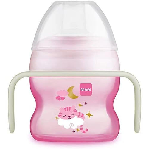 Copo Mam Starter Night 150 ml. Começar é fácil, juntamente com pediatras, os designers da Mam criaram o primeiro copo ideal para crianças pequenas. Extraleve e curvilíneo, fácil para as crianças segurarem a alça brilha do escuro. Bocal antivazamento e extramacio. Com ele os bebês conseguem controlar o fluxo do líquido.