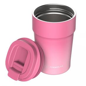A linha Uniq se destaca pelo visual sofisticado, pela base antirruído e pelo acabamento com pintura powder coating, que confere maior resistência e durabilidade. Na cor Rosa Balé Degradê, o produto ganha um visual delicado e moderno, com transição suave de tons que valoriza o design e traz um toque de elegância ao dia a dia. Além disso, é uma alternativa sustentável para quem deseja reduzir o uso de copos descartáveis em bebidas para viagem (take away / to go).