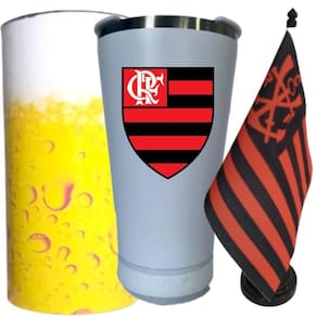 Copo Térmico Com Caixa De Som Bateria Recarregável Bluetooth Time Branco 5 Copo térmico com caixa de som Time SP Branco com Banderinha e Tubo.