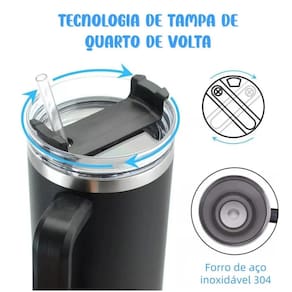 Copo Térmico com Canudo 40oz - Garrafa Térmica Inox Mantenha suas bebidas na temperatura ideal por horas Este copo térmico de 40oz 1,2 litros é a solução perfeita para quem busca praticidade e eficiência térmica. Fabricado em aço inoxidável de alta qualidade com tecnologia de isolamento a vácuo de parede dupla, mantém bebidas quentes por até 8 horas e geladas por até 12 horas. O design ergonômico inclui alça resistente para transporte confortável e seguro. A tampa possui sistema de vedação hermética que evita vazamentos, enquanto o canudo reutilizável proporciona experiência de consumo prática e higiênica. Ideal para academia, escritório, viagens, caminhadas e uso diário. A base antiderrapante garante estabilidade em qualquer superfície. O material inox é livre de BPA, atóxico e não retém odores ou sabores. Especificações técnicas: Capacidade: 40oz 1,2L Material: Aço inoxidável 304 Isolamento: Parede dupla a vácuo Inclui: Tampa com vedação + Canudo reutilizável + Alça ergonômica IMPORTANTE: A cor do produto é e será enviada aleatoriamente conforme disponibilidade em . Você pode receber qualquer uma das cores disponíveis azul, verde, rosa, preto, branco, turquesa, etc. . Todas as cores possuem a mesma qualidade e funcionalidade. Marca: Não Informado