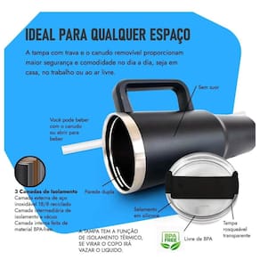 Copo Térmico com Canudo 40oz - Garrafa Térmica Inox Mantenha suas bebidas na temperatura ideal por horas Este copo térmico de 40oz 1,2 litros é a solução perfeita para quem busca praticidade e eficiência térmica. Fabricado em aço inoxidável de alta qualidade com tecnologia de isolamento a vácuo de parede dupla, mantém bebidas quentes por até 8 horas e geladas por até 12 horas. O design ergonômico inclui alça resistente para transporte confortável e seguro. A tampa possui sistema de vedação hermética que evita vazamentos, enquanto o canudo reutilizável proporciona experiência de consumo prática e higiênica. Ideal para academia, escritório, viagens, caminhadas e uso diário. A base antiderrapante garante estabilidade em qualquer superfície. O material inox é livre de BPA, atóxico e não retém odores ou sabores. Especificações técnicas: Capacidade: 40oz 1,2L Material: Aço inoxidável 304 Isolamento: Parede dupla a vácuo Inclui: Tampa com vedação + Canudo reutilizável + Alça ergonômica IMPORTANTE: A cor do produto é e será enviada aleatoriamente conforme disponibilidade em . Você pode receber qualquer uma das cores disponíveis azul, verde, rosa, preto, branco, turquesa, etc. . Todas as cores possuem a mesma qualidade e funcionalidade. Marca: Não Informado Ean: 7809016319839