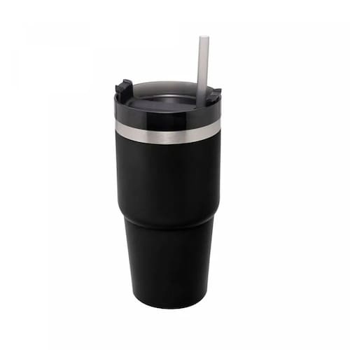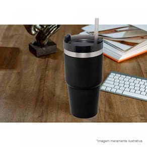 1 Copo Térmico de Aço Inox Parede Dupla SlimTerm com Base Ergonômica e Canudo 590ml Preto 29570 - Wolff