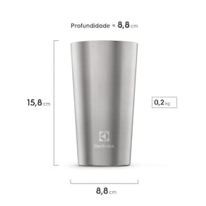 Quem prioriza a autenticidade do sabor da cerveja fresquinha pode contar com o Copo Térmico de Cerveja e Chopp Electrolux Home Bar 560ml. Sua dupla camada em aço inoxidável com isolamento preserva as bebidas geladas por até 4 horas. Já bebidas com gelo podem permanecer geladas por até 18 horas¹.