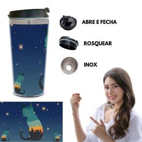 Copo térmico gato lua cheia 450 ml inox. Para quem é louco por gatos