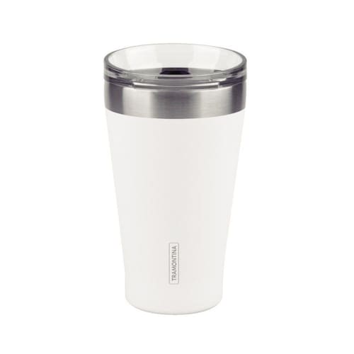 Copo Térmico Exata em Aço Inox Branco com Tampa 550 ml Tramontina - Especificações TécnicasOs copos Térmicos inox Tramontina são feitos em parede dupla de aço inox com isolamento a vácuo para manter as bebidas frias ou quentes por mais tempo.