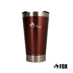 Especificação Marca: Fox Stainless BPA Free (Livre de resíduos plásticos) Cor: Vinho Capacidade: 473ml Parede dupla com isolamento a vácuo Gelada por 4h Quente por 1h Com Gelo 17h Não condensam por fora Abridor de garrafa acoplado Aço inoxidável escovado