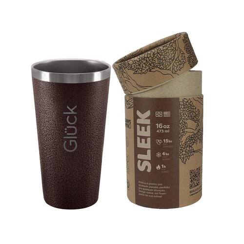 Se você procura por uma marca que faça a diferença, por um acessório feito pra durar uma vida, por qualidade, praticidade e durabilidade, por alegria e bons momentos, pode parar de procurar, é só apostar na Glck.A Glck nasceu nos Estados Unidos. Lá, a utilização desse tipo de copo seja no trabalho, em viagens ou mesmo para lazer é muito valorizada, tanto pela praticidade e qualidade que proporciona quanto pela diminuição de resíduos plásticos na natureza.A marca preza por enaltecer os bons momentos, sejam eles quais forem. O lema é Be Glck. Ser glck não se limita a ter ou usar os produtos, mas sim ter personalidade, ser diverso, múltiplo e ter a consciência de escolher uma marca que se preocupa com o impacto ambiental e com o planeta.ESPECIFICAÇÕES TÉCNICAS:Marca: GlckModelo: Copo Térmico SleekCor: Hammer TobaccoCapacidade: 473mlMaterial: Aço Inox 304- Parede Dupla com isolamento á vácuo- Empilhamento infinito- Parte externa não suaTérmica Quente: 45minTérmica Fria: Até 4hGelo: Até 15hLivre de BPADimensões do produto AxCxL : 14,6 x 8,7 x 8,7cmPeso: 190gGarantia Vitalícia contra defeitos de fabricação