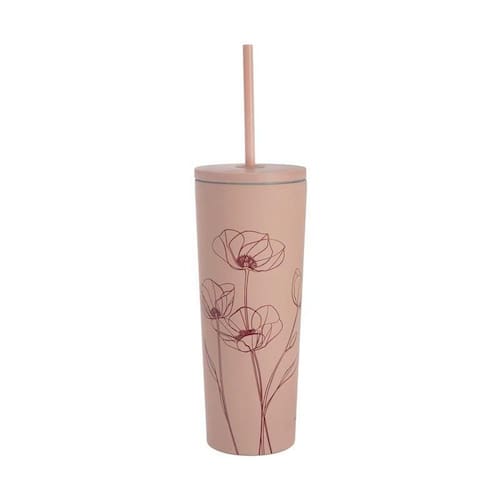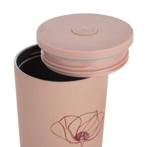 Produzido em aço inoxidável e plástico, com capacidade para 600 ml, tem paredes duplas que prolongam a temperatura do líquido. Com acabamento soft emborrachado e padronagem floral.