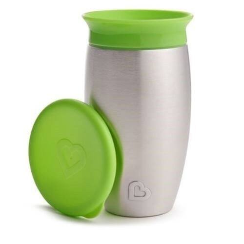 Conteudo da Embalagem: 01 Copo Antivazamento 360º Inox Capacidade: 296ml Indicado para crianças a partir de 12 meses Composição: Aço Inoxidável, Polipropileno e Silicone Sem BPA Fabricante: Munchkin Ean: 735282117008