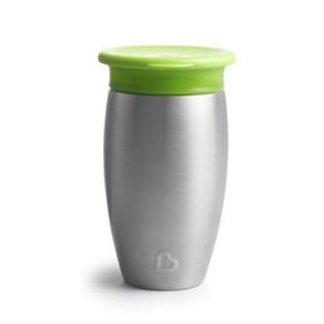 Copo Antivazamento 360º Inox 296 ml - Munchkin. Feito de material extremamente durável, o Copo Térmico Inox 360º de aço inoxidável mantem os liquidos frescos durante todo o dia. Além disso, evita derramamentos e é um grande aliado para a saúde dental infantil, pois não possui nenhum tipo de bico. Fácil de usar e ainda melhor para lavar. Recomendado a crianças a partir de 12 meses.Sem BPA.