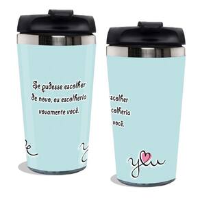 Tampa de rosquear. Não pega cheiro. Copo pode ser levado em bolsas e mochilas. Não vaza ao deixar na horizontal. Mantém quente ou frio por mais de 1 hora com a mesma temperatura. Impressão feita com tintas originais, não desbota ao longo do tempo. Impressão feita com 6 cores, para dar maior nitidez na sua arte.