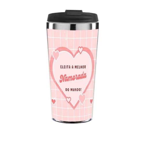 Copo Térmico Namorados-- Eleita a melhor namorada do mundo copo Térmico Personalizado Namorados Eleita a melhor namorado do mundo Um lindo copo para você presentear sua namorada. Afinal, demonstrar seu carinho e amor não tem preço. Ela vai amar ganhar esse copo. E andar com ele por todos os lados. Ótima opção para o dia dos namorados e aniverário. Obs: Essa compra garante milhões de beijos do seu amor, você não vai deixar passar batido né Resistente e durável é o copo perfeito para degustar aquela bebida especial. Além de manter sua bebida gelada por até 2 horas ou 1 hora quente, sua parede dupla faz com que a sua bebida fique conservada por mais tempo. A compra do Copo Térmico Personalizado Inox 450ml é indicada para quem gosta de ter a sua bebida preferida sempre na temperatura desejada e em alto estilo. DescriçãoPeso: 250g Altura: 17cm Largura: 9.5 cm Comprimento: 8 cm Capacidade: 450 Ml Material: inox / AcrílicoEspecificaçõesAço inoxidável 90% livre de BPA Isolamento à pressão de parede dupla Certificados: FDA / BPA Free / Supplier Assessment. Impressão em alta qualidade Tampa de roquear e abre e Fecha Trava de segurança de abre e fecha.