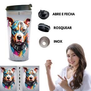 Copo térmico pet lover pitbull 450 ml inox int Para quem ama cães e quer levar essa paixão por onde for