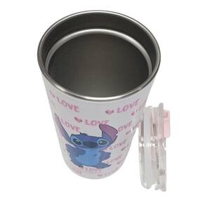 Especificações: Marca: zona criativa Modelo: stitch love disney Altura: 18cm largura: 8,5cm comprimento: 8,5cm Capacidade: 500 ml Material: aço inoxidável e plástico Cor predominante: branco