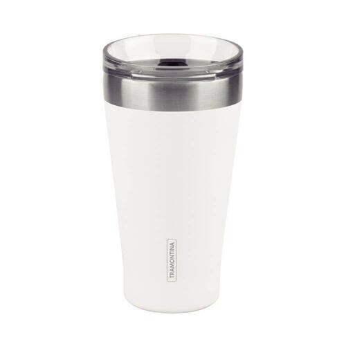 O copo termico Tramontina em aco inox com parede dupla branco com tampa 550 ml e indispensavel para quem tem uma rotina corrida e precisa de itens que a deixem muito mais pratica. Ideal para aproveitar sua bebida ate o fim, ele a conserva em suas bebidas na temperatura ideal por mais tempo e, pois e produzido em aco inox com parede dupla e isolamento a vacuo. Ele ainda e livre de BPA, e facil de limpar, nao mancha e nao retem odores, o que permite que seja utilizado com as bebidas mais variadas, desde cafe ate drinks. O copo vem acompanhado de tampa e possui abertura para beber, sem precisar abri-lo! Os copos termicos inox Tramontina sao feitos em parede dupla de aco inox com isolamento a vacuo para manter as bebidas frias ou quentes por mais tempo. Aproveite seu cha ou seu cafe quente, drink favorito ou bebida gelada ate o fim. Livre de BPA. Facil de lavar, nao mancha, nao quebra e nao retem odores. A parede dupla, alem de conservar a temperatura evita que a parede externa aqueca com bebidas quentes ou sue com bebidas geladas. Compativel com a maioria dos porta copos. Uso recomendado tanto para adultos quanto para criancas acima de 3 anos. Produto reutilizavel. Acompanha tampa, possui abertura para beber sem precisar abrir o copo. A tampa contem um acabamento de silicone que facilita a vedacao. O copo termico com tampa e ideal para consumir sua bebida favorita em movimento, caminhando ou no console do carro. A tampa evita respingos ou que o usuario derrame o liquido demasiadamente.