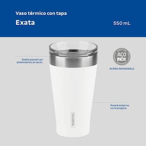 Copo Térmico Tramontina Exata em Aço Inox Branco com Tampa 550 ml