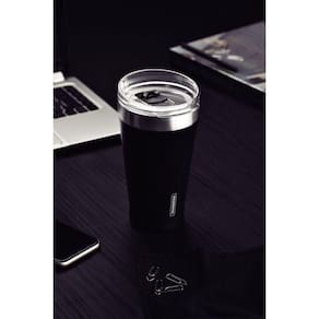 O copo térmico com tampa é ideal para consumir sua bebida favorita em movimento, caminhando ou no console do carro.