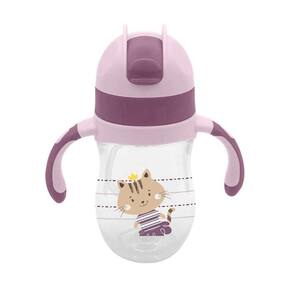Copo transição infantil gatinha com canudo silicone alça 220ml 6m+ antivazamento bebê copinho treinamento criança clingo Copo com canudo de silicone gato - clingo
