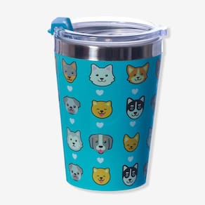 Para você que é fã de pets.... o copo tem a tampa revestida em plástico e com seu interior feito em aço inoxidavel para você a qualquer lugar.