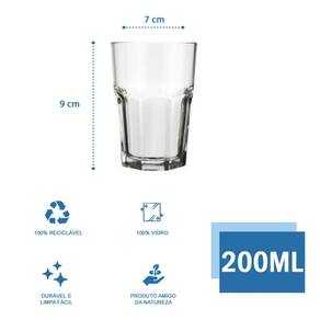 Jogo com 24 Copos De Vidro 200ml Bristol Nadir Figueiredo