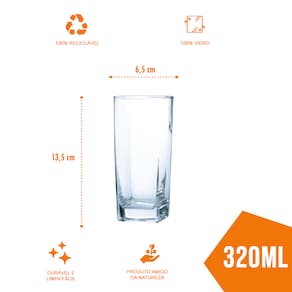 Kit com 18 Copos de Vidro Bali 320 ml