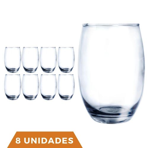 Copo Vidro 450ml Redondo Bellagio Jogo com 8 Transparente