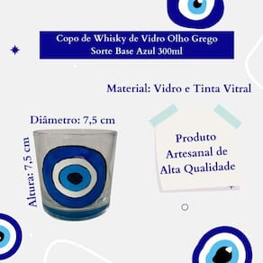 Copo Whisky Artesanal Vidro 300ml UmbandaCandomblé-Selecione Cor: Olho Grego Sorte Copo Whisky Artesanal Vidro 300ml Umbanda Candomblé-Selecione O copo de Whisky da Bialluz é um ótimo copo que pode ser como um item decorativo e é perfeito para compor o seu altar. Confeccionado em vidro que garante alta resistência e durabilidade. Possui desenho personalizado e exclusivo para você. Escolha um dos modelos disponíveis na opção COR do próprio anúncio. Enviamos o seu copo em até 24 horas após a confirmação de pagamento Capacidade: 300 Mililitros Material: Vidro Caso tenha alguma dúvida nos mande mensagem que respondemos rapidinho para te ajudar da melhor forma possível Marca: Não Informado