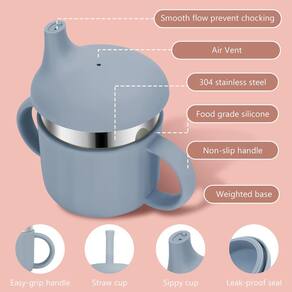 - À prova de vazamento e estilhaçamento, projetado para pequenos - o líquido não sai pela tampa, pode manter os danos ao mínimo e manter as roupas do seu filho e o chão agradáveis e limpos. O copo de treinamento de aço inoxidável de silicone também é inquebrável, não quebra quando cair.