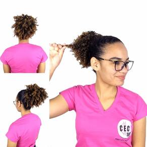 Com o Coque Afro Puff Castanho Acobreado, você terá um penteado moderno, elegante e prático. Adquira já o seu e arrase em todas as ocasiões!