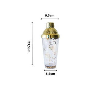 Coqueteleira em Plástico Com Flocos De Glitter Parede Dupla torna o produto muito mais charmoso e combina com aquela super festa.