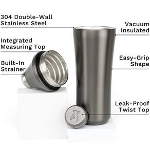 Eleve o bar da sua casa. Faça coquetéis artesanais perfeitos em casa com sua nova coqueteleira Elevated Craft Projetado para impressionar, projetado para funcionar e garantido para elevar sua experiência de coquetel. - Sem vazamentos pegajosos - sem mãos congeladas - sem tampas presas. Quanto líquido o agitador retém? O copo principal contém 609 g de líquido. O volume total montado da coqueteleira é de 793 g. Quando montado, o coqueteleiro pode transportar coquetéis pré-embalados, uma garrafa inteira de vinho gelado ou uma garrafa de 750 ml do seu destilado gelado favorito. A coqueteleira Elevated Craft Shaker pode ser lavada na máquina de lavar louça? Sua coqueteleira pode ser lavada na prateleira superior usando configurações normais de lavagem em casa. Como posso saber quando minha bebida está pronta para servir? Você não precisa mais congelar suas mãos para saber se um coquetel está frio. O frio máximo acontece cerca de 12 segundos depois que você começa a agitar com líquidos em temperatura ambiente e uma quantidade moderada de gelo. Como o isolamento a vácuo de parede dupla no copo afeta a diluição? Você pode esperar obter cerca de 20% de diluição dos cubos de gelo quando o líquido atinge o frio máximo durante a agitação. A parede dupla significa que você não diluirá demais seu coquetel em um dia quente porque a temperatura interna da coqueteleira é constante. Precisarei substituir as juntas com frequência? Não. Nossas juntas são feitas de silicone de grau de destilaria e são projetadas para durar para sempre. Se você perder um, oferecemos substituições. O agitador é apoiado por uma garantia? Sim. O Elevated Craft Shaker é projetado para durar décadas. Queremos que esta seja a última coqueteleira que você precisará comprar e estamos comprometidos em estocar peças de reposição para manter você tremendo.