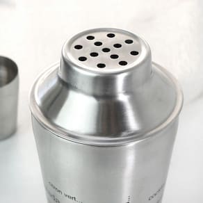 Esta coqueteleira é perfeita para preparar drinks e refrescos pois possui aparador de gelos e tampa dosadora.