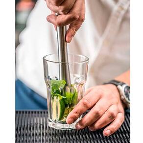 Coqueteleira copo duplo, peneira e socador. Coqueteleira modelo Boston é uma das mais tradicionais e pratica de ser usada. Formada por duas partes, sendo 2 copos de inox e um levemente mais pesado que o outro. Socador de frutas foi produzido especialmente para macerar com facilidade uma grande variedade de frutas utilizadas em drinks, este socador é considerado um grande aliado no preparo das mais diversas receitas como: caipirinha, caipiroska ou até mesmo mojito. Alem de deixar os drinks com uma textura menos densa e mais deliciosa, os sabores ficam mais caracteristicos, o que agrada mais e difere bastante dos drinks que sao mexidos. A Peneira Inox é perfeita para quem procura utensílios com alto nível de higienização e sem contaminação cruzada com os alimentos. Contem: 1 Socador de Frutas Dimensão: 21 x 3,5 cm 1 Peneira Pequena Medidas: 10 x 23,5 x 3 cm 1 Copo Inox de 530 ml Peso: 80g Medidas: 13,5 x 9 cm 1 Copo Inox 820 ml Peso: 170g Medidas: 17,5 x 9,5 cm Volume util: 600 ml Material: Aço Inoxidavel