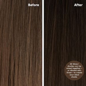 - Encontre o seu tom – O tom marrom médio é melhor para morenas que procuram adicionar tons mais frios ou minimizar o calor em seus cabelos castanhos médios. O Gloss+ melhorará sua cor, brilho e suavidade, mas não é formulado para cobrir permanentemente os cinzas.