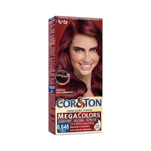 Cor & Ton Tinta 6.646 Vermelho Cereja 50g DESCRIÇÃO: É uma coloração permanente com fórmula de altíssima qualidade. Proporciona aos cabelos cores vivas, luminosas e duradouras. Total cobertura dos fios brancos. Hidratação, sedosidade e brilho.AÇÃO/ATIVOS: Com queratina, gérmen de trigo, silicone e filtro UV que garantem cabelos fortes, nutridos e com máxima proteção. Com textura cremosa, facilita a distribuição nos fios, fazendo com que os pigmentos sejam facilmente absorvidos.MODO DE USAR: Utilizar conforme indicado na embalagem.ESTE ANÚNCIO CONTÉM: 01 Cor & Ton Tinta 6.646 Vermelho Cereja 50gCor & Ton Tinta 6.646 Vermelho Cereja 50g
