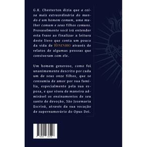 G.K. Chesterton dizia que a coisa mais extraordinária do mundo é um homem comum, uma mulher comum e seus filhos comuns. Provavelmente você irá entender esta frase ao finalizar a leitura deste livro que conta um pouco da vida de Toninho através de relatos de algumas pessoas que conviveram com ele. Um homem generoso, como foi unanimemente descrito por cada um de seus onze filhos, que se consumiu de amor por sua família, especialmente pela sua esposa, e que viveu de maneira admirável os ensinamentos de seu santo de devoção, São Josemaria Escrivá, através da sua vocação de supernumerário do Opus Dei. Marca: Editora Tesouros Católicos