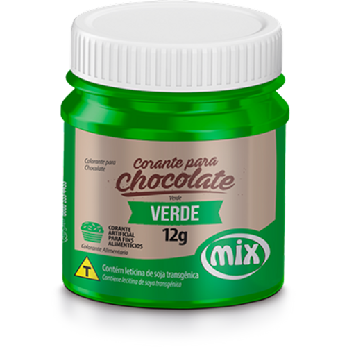 Corante Em Gel P/ Chocolate Verde 12g Mix - CARACTERÍSTICASCorante artificial em gel próprio para chocolates e preparações oleosas. Aguenta altas temperaturas, sem alterar o sabor ou desestabilizar a preparação. Coloração mais rápida e fácil, trazendo lindas cores às suas receitas!Ideal para aplicação em chocolates, coberturas (fracionadas e hidrogenadas), chantilly, marshmallows, merengues, pasta americana, glacê, entre outros.Armazenar em local seco e à temperatura ambiente. Evite exposição ao sol. MODO DE PREPAROAqueça o corante entre 5 e 10 segundos, acrescente ao chocolate branco derretido e misture até completa homogeneização.Dosagem: máximo 12g de corante para 600g de produto final.INGREDIENTESGordura vegetal, glicerina, estabilizante lecitina de soja e corantes artificiais tartrazina 3,58% e azul brilhante FCF 1,14%. AL??RGICOS: contém derivados de soja. Pode conter leite e ovo. N??O CONT??M GL??TEN.REGRAS GERAISImagens ilustrativas, as cores podem alterar conforme o seu monitorTodas as informações divulgadas são de responsabilidade do fabricante/fornecedor.Caracter?sticas Gerais do Produto:Garantia: Sem Garantia Marca: MIX Ingredientes