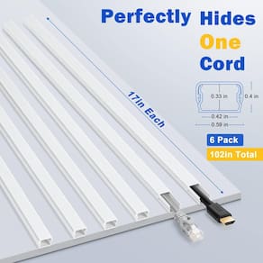 Corretivo de cabo de 102 polegadas: nosso kit de cobertura de cabo contém 6 canais de fio de 17 polegadas (comprimento total de 102 polegadas) para atender à maioria das necessidades domésticas ou de escritório. A superfície de corte suave da pista de cabos se conecta perfeitamente, para que possa ser facilmente unida de acordo com seu cenário de gerenciamento de fios embutido na parede