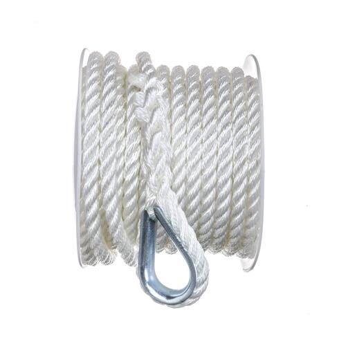 Seachoice Corda de linha de âncora, 3 fios torcidos, branco, nylon, 3/8 pol. x 50 pés