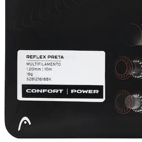 Conheça as características da Corda Head Squash Reflex 18L 1.20mm Preta Set Individual- Perfil: Potência e conforto;