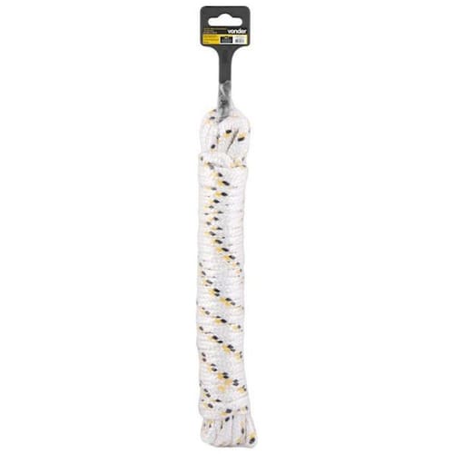 Corda Multifilamento Trançada 8Mm X 10M Vonder Ideal para amarração de cargas, fardos, confecção de barrigueiras, redes de proteção esportivas, utilização em frigoríficos, cortinas de aviários e na agricultura em geral. Não utilizar para elevação/transporte de pessoas, cargas ou animais. Não utilizar em cadeiras suspensas, cabos de guia de segurança e fixação de trava quedas. Variação admitida na massa e diâmetro de até 5% para mais ou para menos. Não indicada para uso externo ou locais onde possa ter incidência direta de sol, pois não possui proteção contra raios ultravioleta. Fabricado em polipropileno - PP, possui boa resistência à abrasão e tração. Material 100% virgem. Conteúdo da embalagem: 1 Cartela com 10 metros Referência: 80.46.008.010 Vonder Marca: Não Informado Ean: 7893946489779