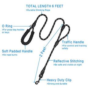 Nossa coleira de corda para cães possui 2 alças, uma na extremidade da coleira a 1,8 m e outra a 600 cm do clipe. O longo é perfeito para caminhadas casuais, cheirar estendido e caminhadas com coleira solta, a mais curta é ótima para calçadas movimentadas, ciclovias e áreas lotadas que exigem que você tenha controle instantâneo e próximo do seu cão. Pode ser utilizado como um auxílio de treinamento para controlar dominância e agressão.