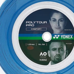 Características Técnicas Perfil: ControleComposição: Monofilamento com polímero de poliéster, formato pentagonalCor: AzulEspessura: 1.25mm / 16LEmbalagem: Rolo com 200 metrosOrigem: Importada Benefícios da Corda Yonex PolyTour 16L Mais Controle nas Jogadas