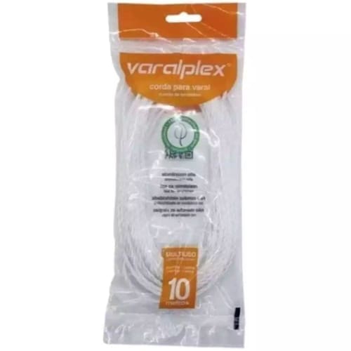 Corda para Varal Branca VaralPlex 10 Metros 3,0mm   \nDescrição:  Corda Para Varal Varalplex 10 metros Multiuso Espessura 3,00mm          Benefícios:    Alta resistência; Resistente ao sol;  Não conduz eletricidade;  Não mancha as roupas      Características:   Marca: Varalplex  Material: Polietileno  Espessura do fio: 3mm  Metragem: 10 metros  Resistência: 87kg 100 % Polietileno virgem, produto reciclável  \n \n