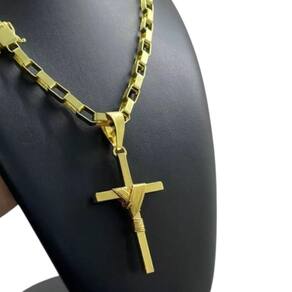 Cordão 10mm Tijolinho Curto + Pingente Cruz - Banhado a ouro Detalhes do Produto: Material: ligas metálicas de alta qualidade, especialmente tratadas para fixação e absorção do ouro, com acabamento em verniz protetor. Aparência: visual idêntico ao ouro maciço. Produção: artesanal, com atenção meticulosa aos detalhes. Banho: 10 camadas espessas de ouro 18k, finalizadas com verniz antialérgico . Elos: soldados varia conforme o modelo . Pedras: zircônias brilhantes cravejadas quando aplicável . Tamanhos Disponíveis: Cordões Masculinos: 70cm padrão e 60cm sob consulta/Pedido Via Chat . Cordões Femininos: 50cm padrão e 45cm sob consulta/Pedido Via Chat . Pulseiras: 21cm padrão ; tamanhos de 18cm a 23cm sob consulta/Pedido Via Chat. Pingentes: conforme imagens; consulte para mais detalhes via chat. Espessuras Recomendadas para Cordões / Pingentes: P: 1mm a 4mm M: 4mm a 8mm G: 6mm a 13mm Gg: 12mm a 18mm Incluso na Compra: Saquinho de organza para armazenamento seguro. Caixa elegante, perfeita para presente. Cupom de desconto para a próxima compra. Flyer com outros produtos da coleção. Carta de agradecimento personalizada. Adesivo da marca ToJoia18k. Informações Adicionais: : 6 meses termos acompanham o produto . Devolução: 7 dias para devolução sem questionamentos. Envio: despacho em até 24 horas úteis após confirmação do pagamento. Cuidados com a Peça: Evite contato com produtos químicos; aguarde o perfume secar antes de usar. Evite contato com shampoo, condicionadores e suor excessivo. Armazene em local seco, preferencialmente no saquinho de organza fornecido. Uso no mar e piscina é permitido; lave com água corrente e sabão neutro após. Por que Escolher a ToJoia18k Semi-joias luxuosas que combinam estilo, qualidade e sofisticação. Banho espesso de ouro 18k, garantindo brilho duradouro e acabamento impecável. Design exclusivo e produção artesanal, perfeitos para qualquer ocasião. Materiais premium que asseguram durabilidade. Ao escolher uma semi-joia ToJoia18k, você investe em qualidade, elegância e uma experiência única. Aguardamos sua compra Observação: pode ocorrer variação no fecho raramente . Imagens reais, sem edição. Qualquer dúvida, estamos à disposição para esclarecimentos. Marca: Tojoia18K